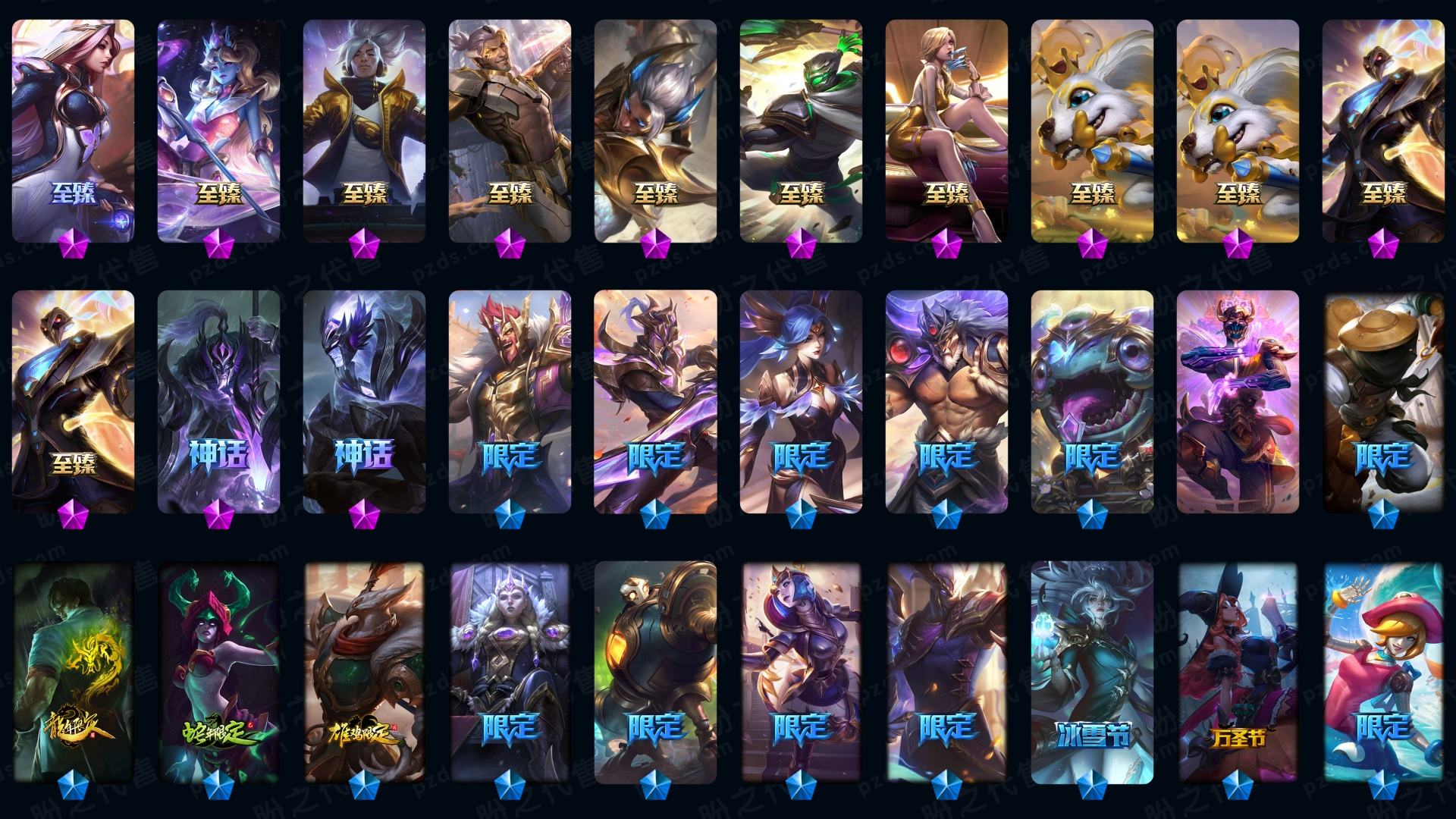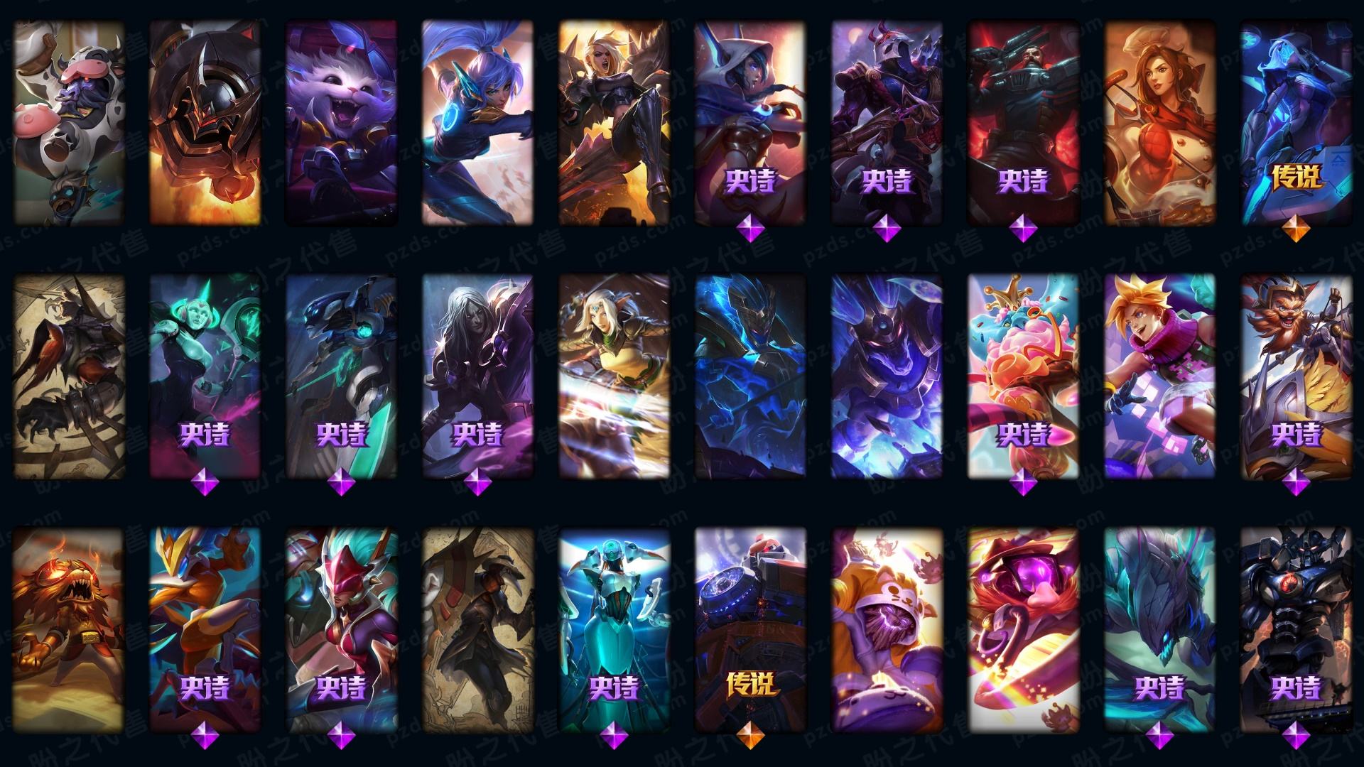 真实1579皮/可排位/58神话/45至臻/192限定/96传说/至臻卡沙-亚索-锤石-万豪-ez-永恩-妮蔻等/龙虾/海克斯科技薇恩/龙年限定4个/超多年限超