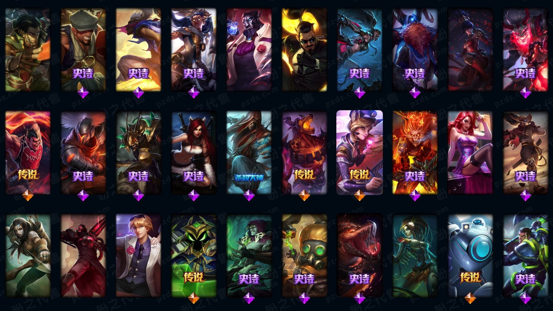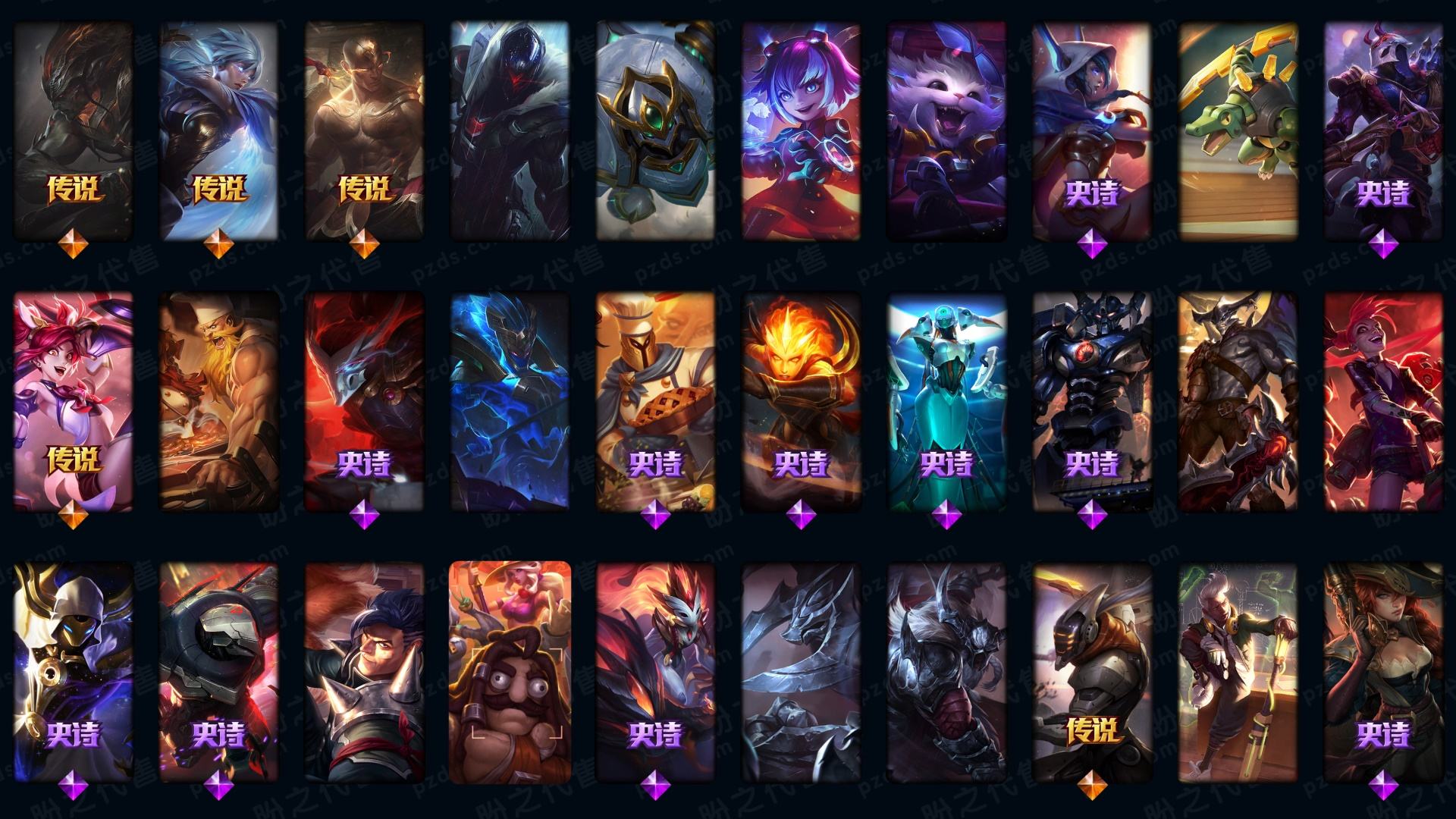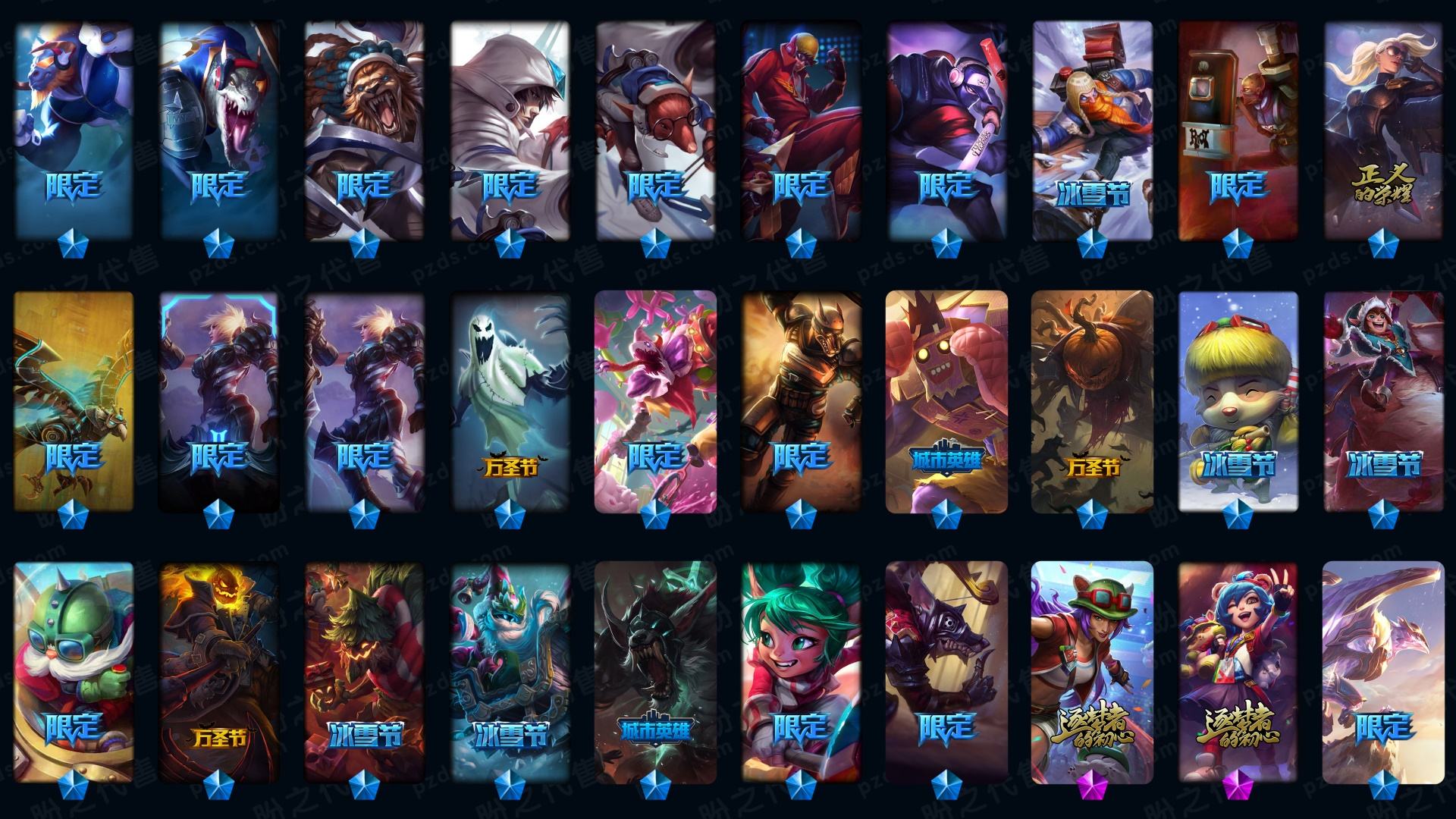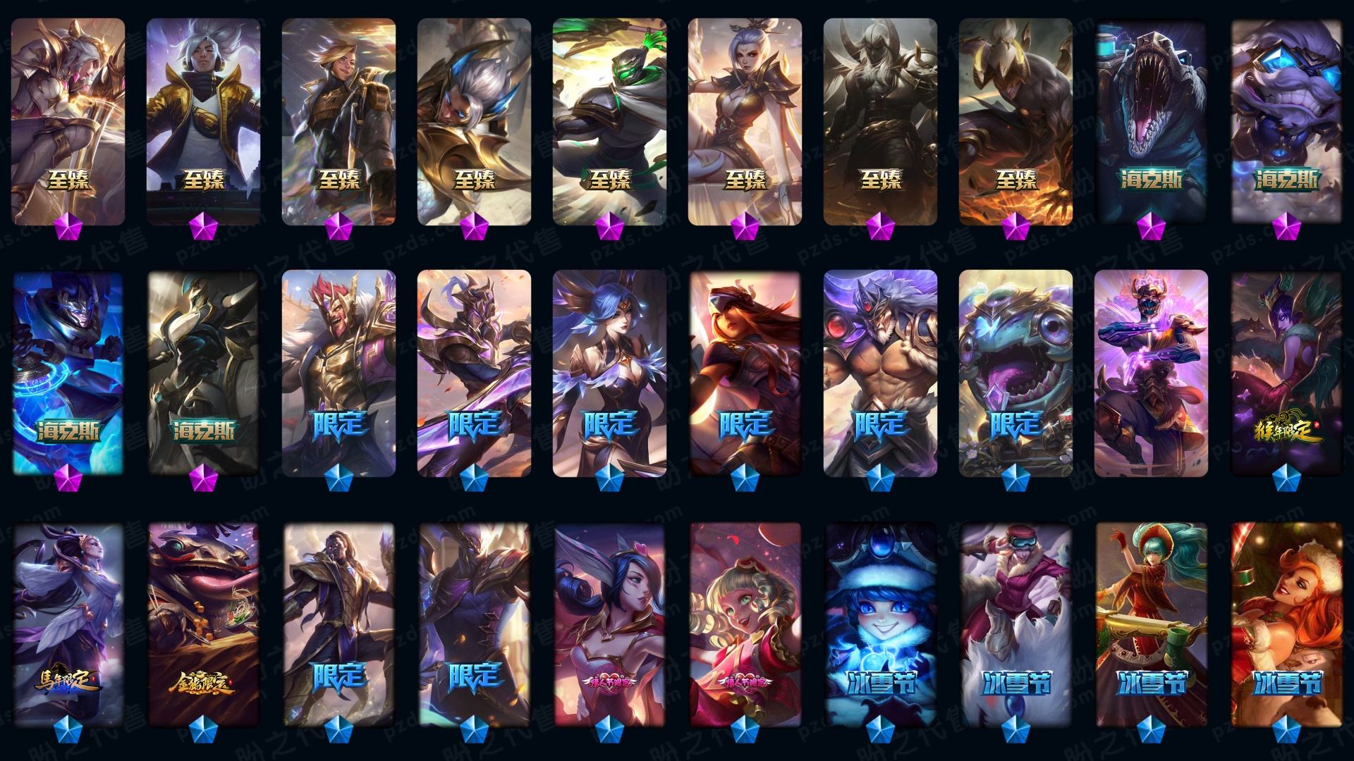 655皮▲龙瞎▲至臻凯隐▲至臻塞娜▲至臻亚索▲至臻蕾欧娜▲至臻拉克丝▲至臻瑞文▲至臻艾瑞莉娅▲至臻锤石▲至臻盖伦▲海克斯鳄鱼皇子希维尔▲创星御星崭星