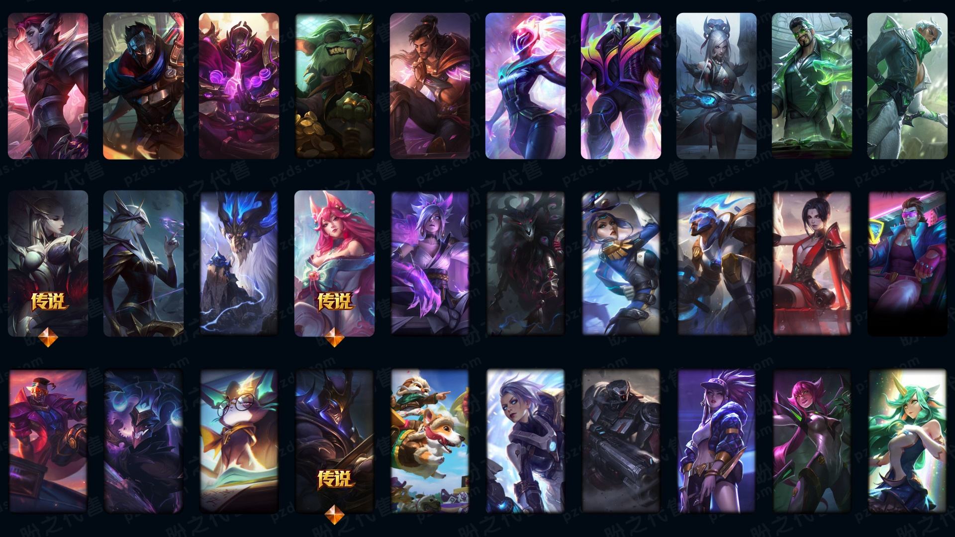真实1296皮/可排位/15神话/201限定/73传说/龙虾+黑龙-至臻寡妇-小鱼-盖伦-万豪-剑魔-剑姬-石头人等/海克斯科技薇恩/超多年限/冠军皮肤超多