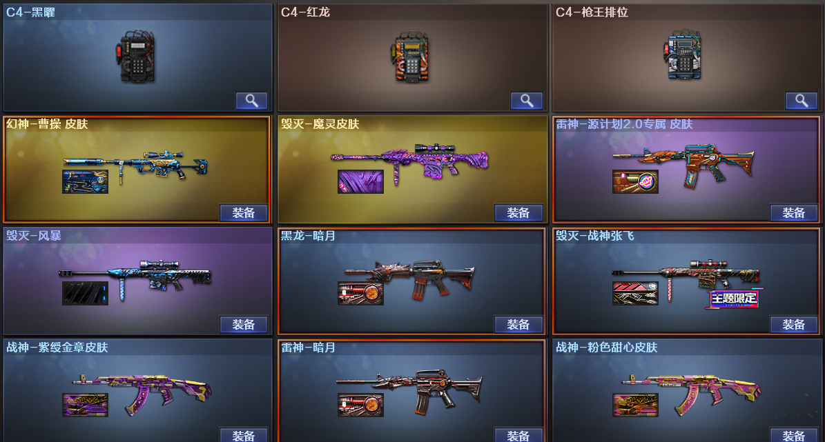 109V/六烈六盘/炽芒蝶刃/双面神/AWM-裁决/M200-幻神/幻神-曹操皮肤/ScarLight-白虎/电竞教官-云悠悠