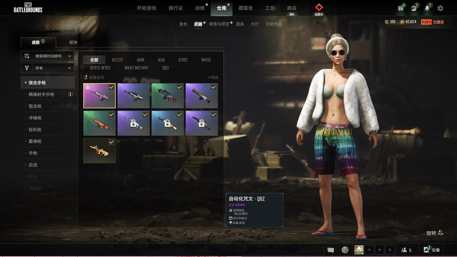 PUBG豪华版满级生存可排位,自动化咒文-QBZ;PGC.2022王牌登场-SLP;分形几何-0BZ;金色落叶-MK47MUTANT;大理石宝藏-ACE32;鎏金王朝-BERYLM762;金色续响-AUG;皇家舰队-MINI4;幸运骑士-SKS;璀璨星光-DBU;镀金-AWM;悠场情歌-KAR9RK;B周年纪念-平底锅