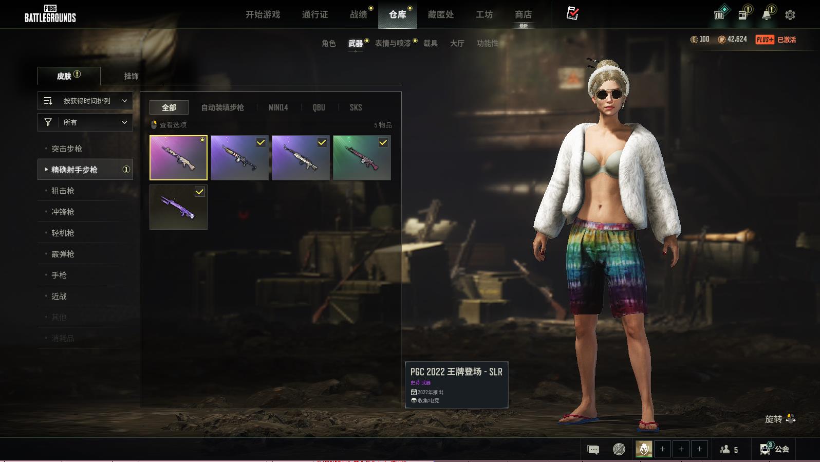 PUBG豪华版满级生存可排位,自动化咒文-QBZ;PGC.2022王牌登场-SLP;分形几何-0BZ;金色落叶-MK47MUTANT;大理石宝藏-ACE32;鎏