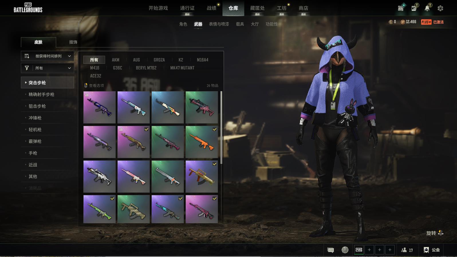 PUBG豪华版绝地求生,不可排位,湮灭-BERYLM762;大理石宝藏-ACE32;PGC2022王牌登场-RERYLM762;黄金齿轮-BERYLM762;镀金-GROZA;彩糖蛋糕-M416;天拘来世-K2;皇家舰队-M164;蔚蓝魔法爆裂考-G36C;分形几何-G36C;致命快递-德拉贡诺夫;幸运骑士-SKS;魔力宝贝-SLP;金色落叶-SKS;镀金-AWM;无拘来世-莫辛纳甘步枪;幽灵之握-M24;意速之道-JUMP;灵魂枷锁-VECTOR;心跳掠夺考-MP9;咻咻咻