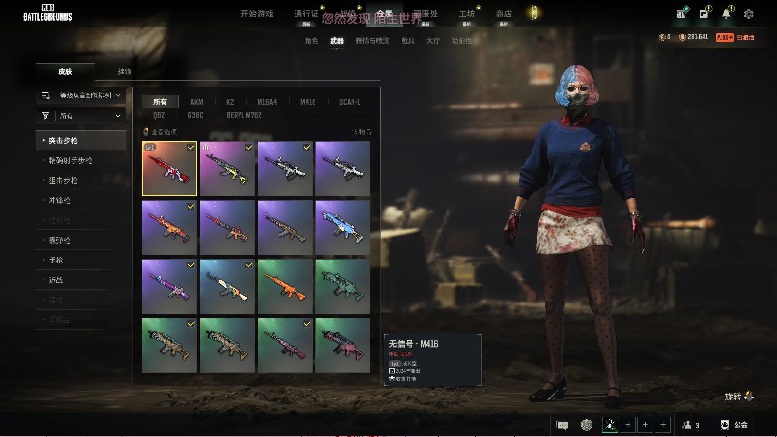 PUBG豪华版绝地求生可排位,无信号-M416;夺目寒光-BERYLM762战场痕迹;破碎元素-MINI14战场痕迹;PGC.2022王牌登场-SLP;十字军-
