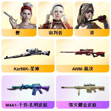 10王者☀毁灭音效卡☀7烈龙☀7副7刀☀CF网剧冠军套☀夜魔套☀堕天使套☀王者炎心☀死亡之眼子弹1000多发