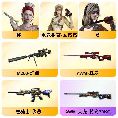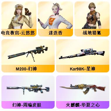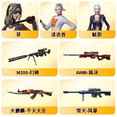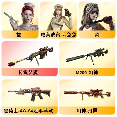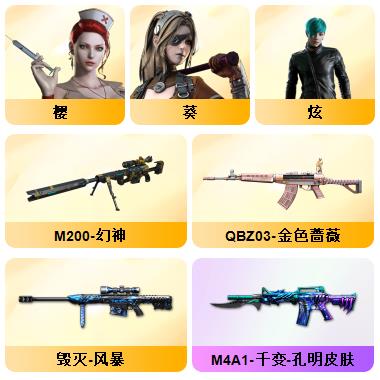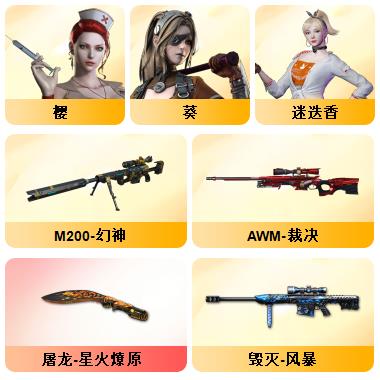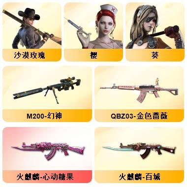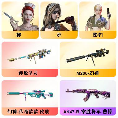 100V星神/六烈龙/生化无需换弹/QBZ蔷薇/白鲨COP/王者春/毁灭音效+雷神音效+极光音效/毁灭耀金/雷神白鲨耀金/火麒麟EVEN+华夏之心+轻羽AG皮肤
