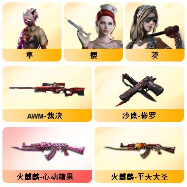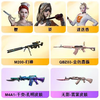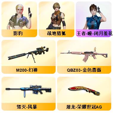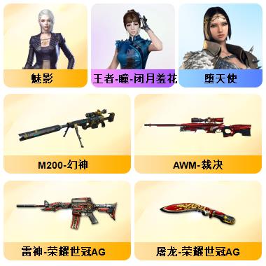 100V星神/六烈龙/生化无需换弹/QBZ蔷薇/白鲨COP/王者春/毁灭音效+雷神音效+极光音效/毁灭耀金/雷神白鲨耀金/火麒麟EVEN+华夏之心+轻羽AG皮肤