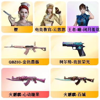 竞技荣光+QBZ+COP-雷霆*2+柯尔特-竞技荣光*3+USP雷暴*1+12套雷+音效卡(火麒麟+雷神+毁灭+黑骑士)+套装(竞技荣光套)