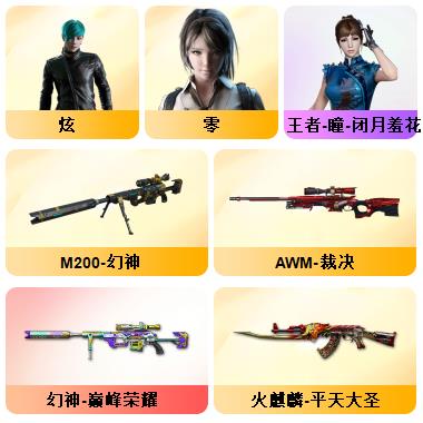 10王者☀毁灭音效卡☀7烈龙☀7副7刀☀CF网剧冠军套☀夜魔套☀堕天使套☀王者炎心☀死亡之眼子弹1000多发