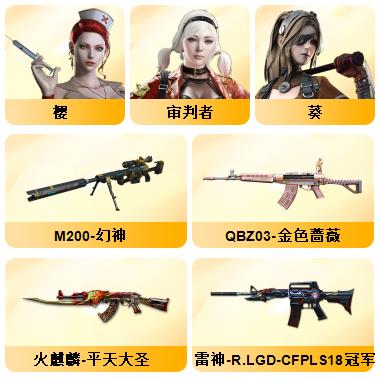 100V⭐6盘6烈炼狱死亡之眼⭐幻兽套⭐毁灭耀金音效卡⭐QBZ金色蔷薇⭐QBZ95幻兽⭐破空枪刃角色蝴蝶