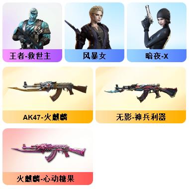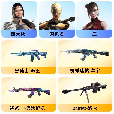 竞技荣光+QBZ+COP-雷霆*2+柯尔特-竞技荣光*3+USP雷暴*1+12套雷+音效卡(火麒麟+雷神+毁灭+黑骑士)+套装(竞技荣光套)