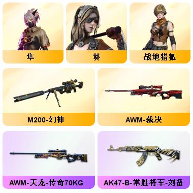 200V:新枪娘暗刃斯泰尔❤️白鲨幻神❤️白鲨QBZ03❤️白鲨麒麟刺❤️❤️王者幻神❤️传说光耀❤️夜魔7套❤️网剧冠军套6盘6烈爆破生化挑战号