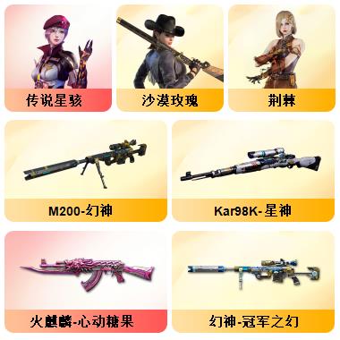 竞技荣光+QBZ+COP-雷霆*2+柯尔特-竞技荣光*3+USP雷暴*1+12套雷+音效卡(火麒麟+雷神+毁灭+黑骑士)+套装(竞技荣光套)