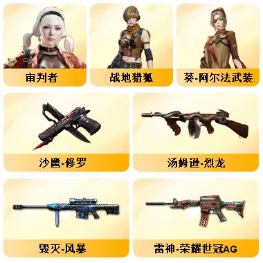 140V雷暴套/雷霆套/六烈龙蝴蝶斯太尔/炼狱小钢/白虎之魄/毁灭音效+荣耀之怒+AG冠军/雷神音效+荣耀星空/AG火麒麟音效/黑骑音效/竞魂音效/生化无需换弹