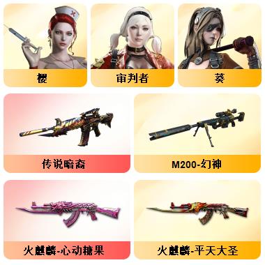 10王者☀毁灭音效卡☀7烈龙☀7副7刀☀CF网剧冠军套☀夜魔套☀堕天使套☀王者炎心☀死亡之眼子弹1000多发