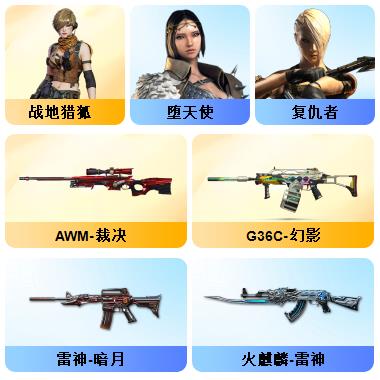 竞技荣光+QBZ+COP-雷霆*2+柯尔特-竞技荣光*3+USP雷暴*1+12套雷+音效卡(火麒麟+雷神+毁灭+黑骑士)+套装(竞技荣光套)