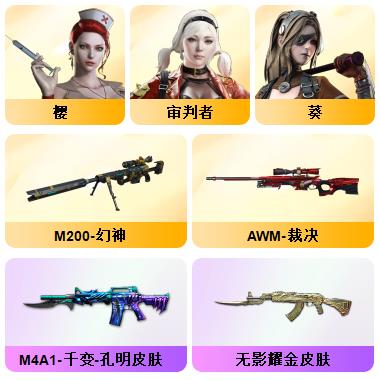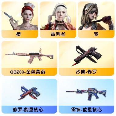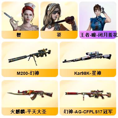200V:新枪娘暗刃斯泰尔❤️白鲨幻神❤️白鲨QBZ03❤️白鲨麒麟刺❤️❤️王者幻神❤️传说光耀❤️夜魔7套❤️网剧冠军套6盘6烈爆破生化挑战号