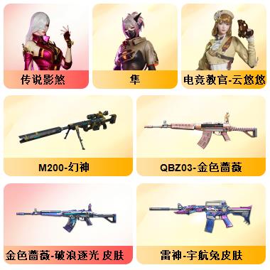 100V星神/六烈龙/生化无需换弹/QBZ蔷薇/白鲨COP/王者春/毁灭音效+雷神音效+极光音效/毁灭耀金/雷神白鲨耀金/火麒麟EVEN+华夏之心+轻羽AG皮肤