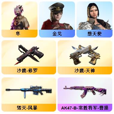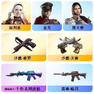 100V星神/六烈龙/生化无需换弹/QBZ蔷薇/白鲨COP/王者春/毁灭音效+雷神音效+极光音效/毁灭耀金/雷神白鲨耀金/火麒麟EVEN+华夏之心+轻羽AG皮肤