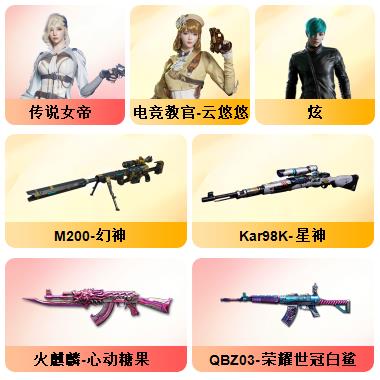 100V幻神荣光套/电竞云悠悠/惊若翩鸿/蛇隐宗/QBZ蔷薇套/毁灭音效+星空耀金青帝/极光音效/雷神星空/AG火麒麟/雷暴USP/六修罗/王者冰魄/开挂必起诉