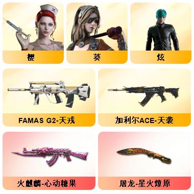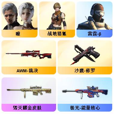 竞技荣光+QBZ+COP-雷霆*2+柯尔特-竞技荣光*3+USP雷暴*1+12套雷+音效卡(火麒麟+雷神+毁灭+黑骑士)+套装(竞技荣光套)