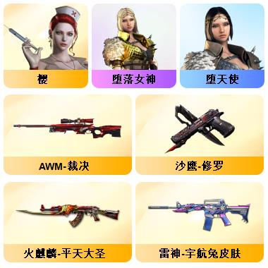10王者☀毁灭音效卡☀7烈龙☀7副7刀☀CF网剧冠军套☀夜魔套☀堕天使套☀王者炎心☀死亡之眼子弹1000多发
