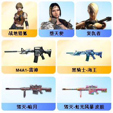 10王者☀毁灭音效卡☀7烈龙☀7副7刀☀CF网剧冠军套☀夜魔套☀堕天使套☀王者炎心☀死亡之眼子弹1000多发