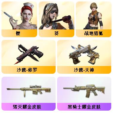 100V☀7副7刀☀8烈龙✚死亡之眼☀弹夹道具齐全☀死亡之眼子弹上千发☀各种英雄武器都有!超多皮肤