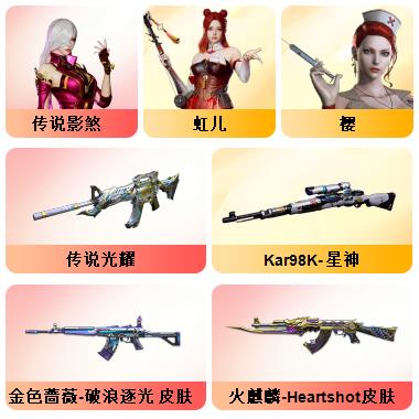100V星神/六烈龙/生化无需换弹/QBZ蔷薇/白鲨COP/王者春/毁灭音效+雷神音效+极光音效/毁灭耀金/雷神白鲨耀金/火麒麟EVEN+华夏之心+轻羽AG皮肤