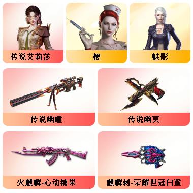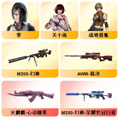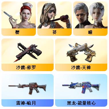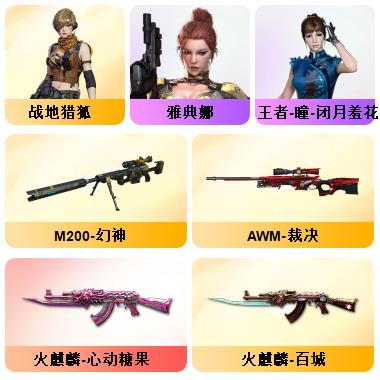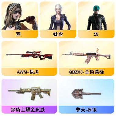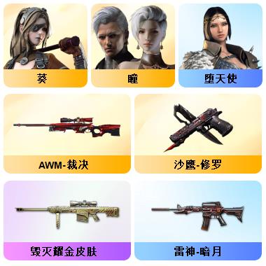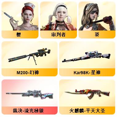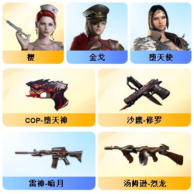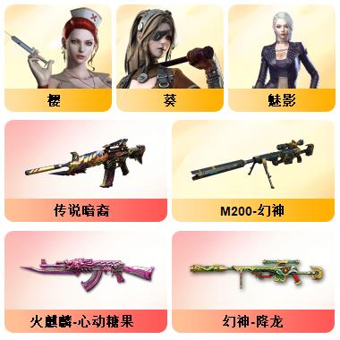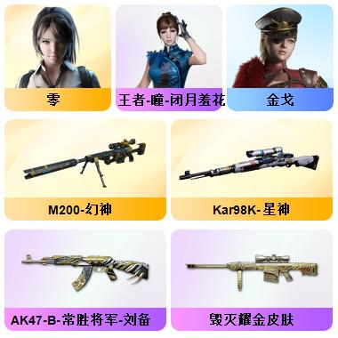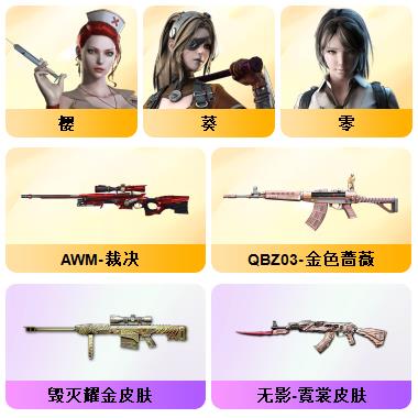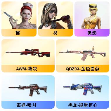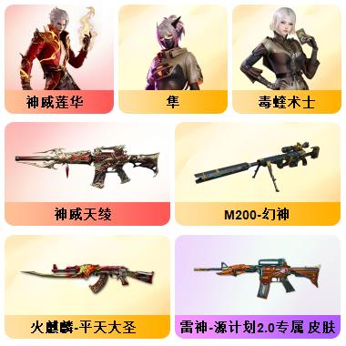 100V星神/六烈龙/生化无需换弹/QBZ蔷薇/白鲨COP/王者春/毁灭音效+雷神音效+极光音效/毁灭耀金/雷神白鲨耀金/火麒麟EVEN+华夏之心+轻羽AG皮肤