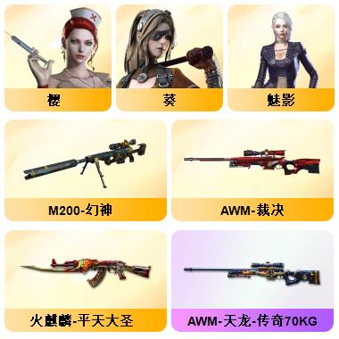 10王者☀毁灭音效卡☀7烈龙☀7副7刀☀CF网剧冠军套☀夜魔套☀堕天使套☀王者炎心☀死亡之眼子弹1000多发