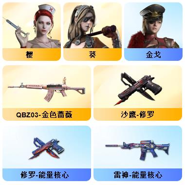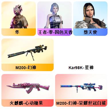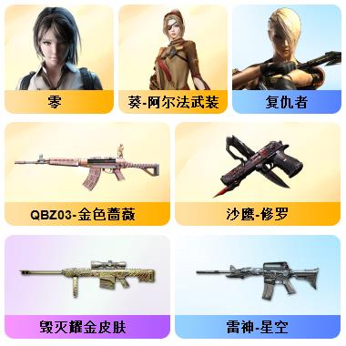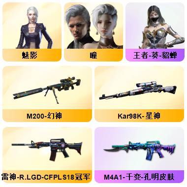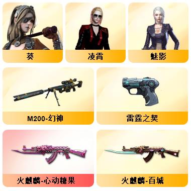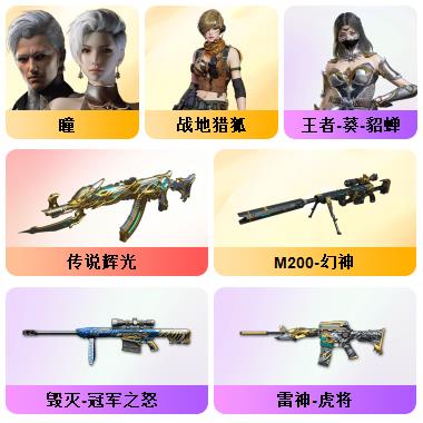 200V:新枪娘暗刃斯泰尔❤️白鲨幻神❤️白鲨QBZ03❤️白鲨麒麟刺❤️❤️王者幻神❤️传说光耀❤️夜魔7套❤️网剧冠军套6盘6烈爆破生化挑战号