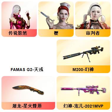 10王者☀毁灭音效卡☀7烈龙☀7副7刀☀CF网剧冠军套☀夜魔套☀堕天使套☀王者炎心☀死亡之眼子弹1000多发