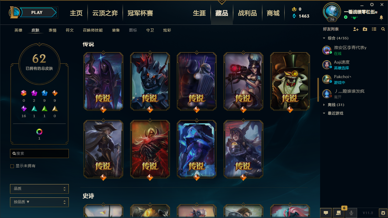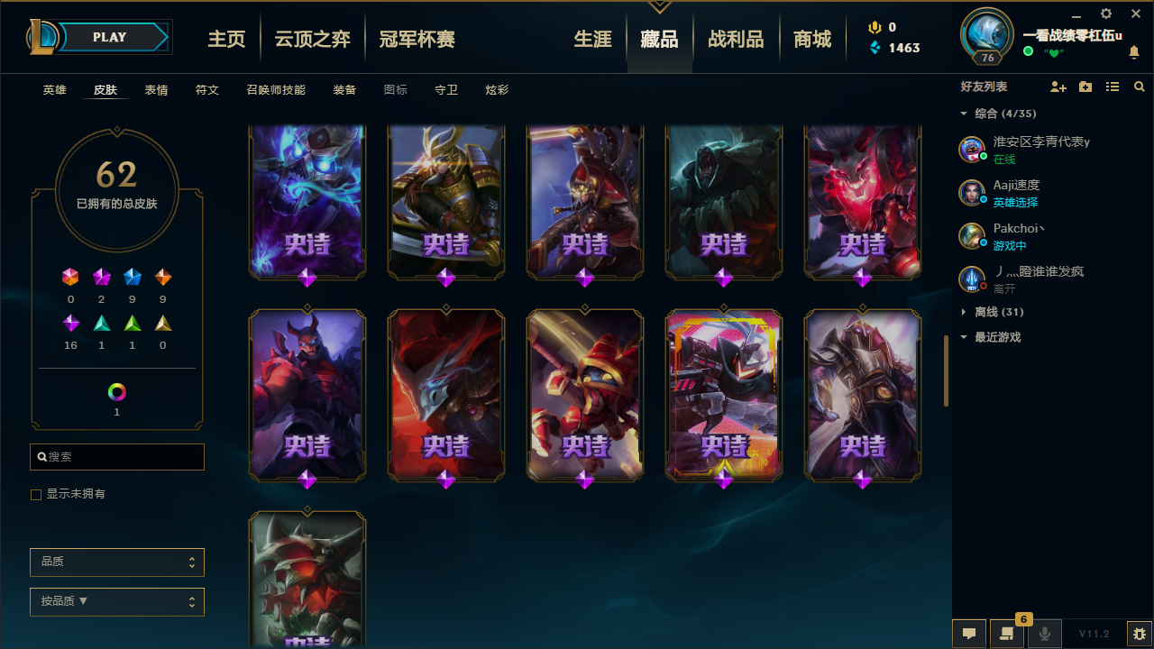 1200皮肤◆龙瞎◆养蜂人◆海克斯人马◆至臻VN阿卡丽战争学院◆卡莎弹幕全炫彩◆斩星魔剑源计划周年限