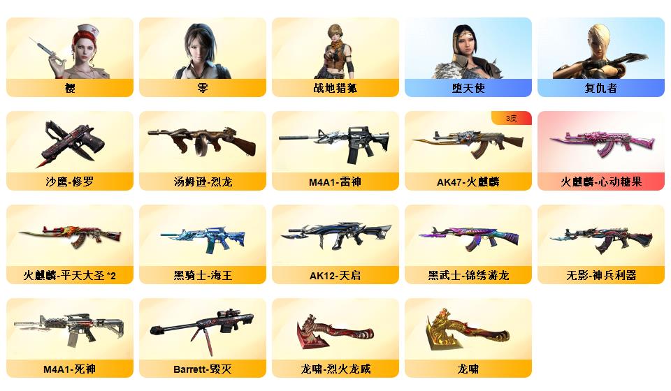 荣誉元帅可排,会员6烈龙死亡之眼,各种武器任你挑选爆破生化挑战三全装,爆破三防角色各种武器任你挑选,实惠账号