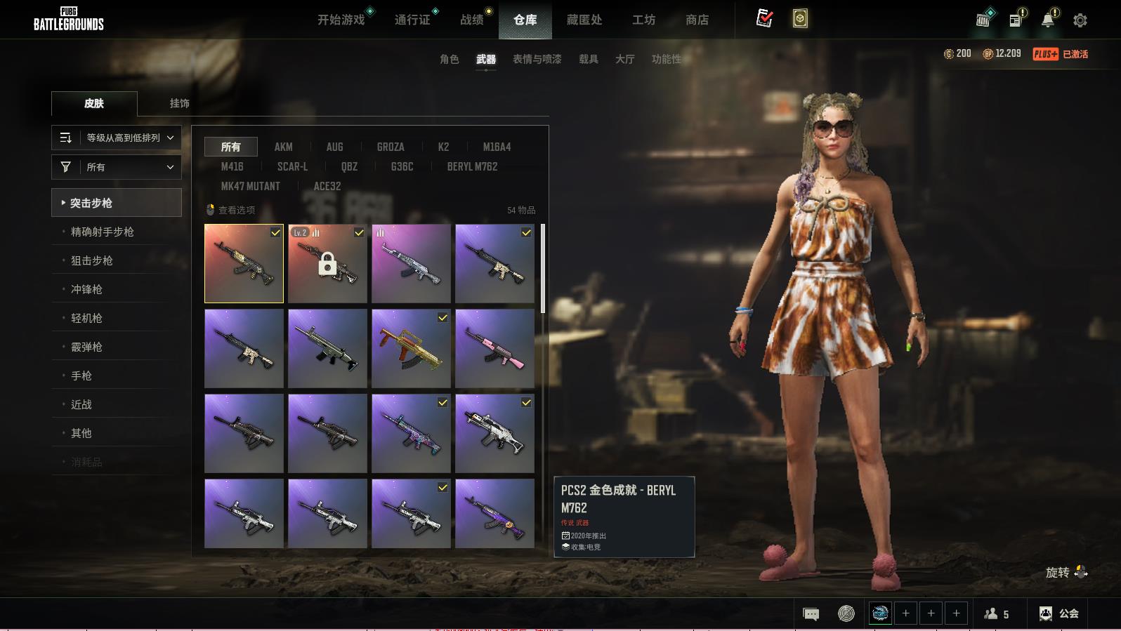 PUBG豪华版可排位,随机2-4级生存等级,PCS2金色成就-BERYLM762;妖魔之触-ACE32Lv247;最后的小夜曲-M24;aespa-AKM;PN