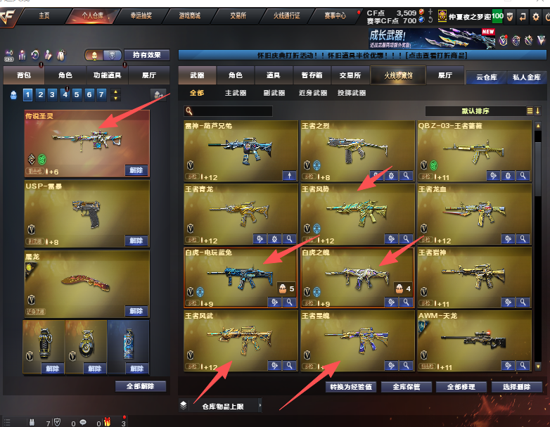 新增白虎 霓虹机甲 双面神 毒蜂 清道夫 黑龙吞噬者 炼狱小钢 鹰传说圣灵 传说辉光 王者星神 白虎 竞技荣光套 AG世冠火麒麟王者魅影雷暴套金色蔷薇⑥烈蝴蝶⑥炼狱看血免换弹