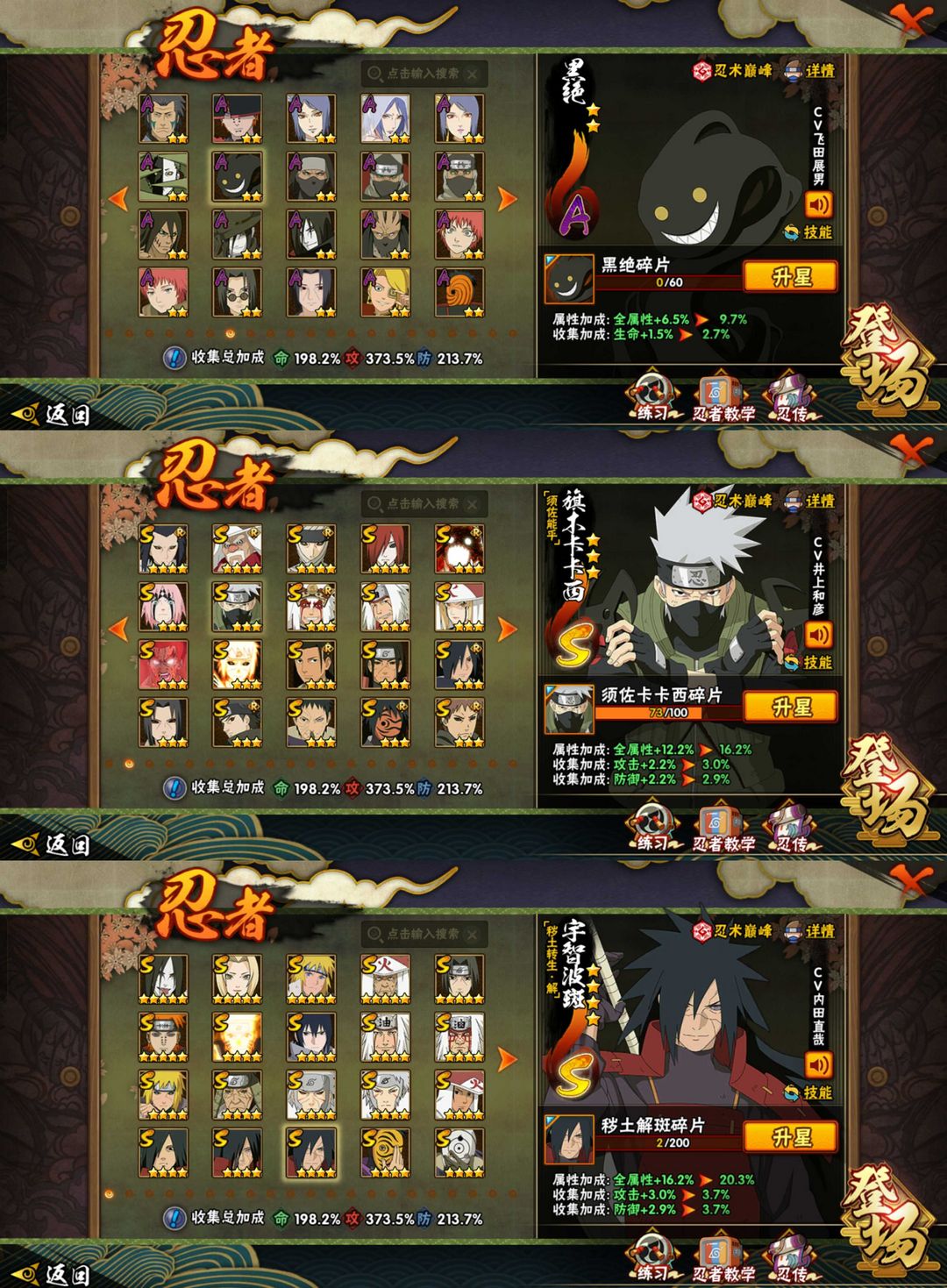 侠影佐助♏四星解斑黄猿4100万♏53s410全忍者全通灵♏黑绝舍人♏忍战带土