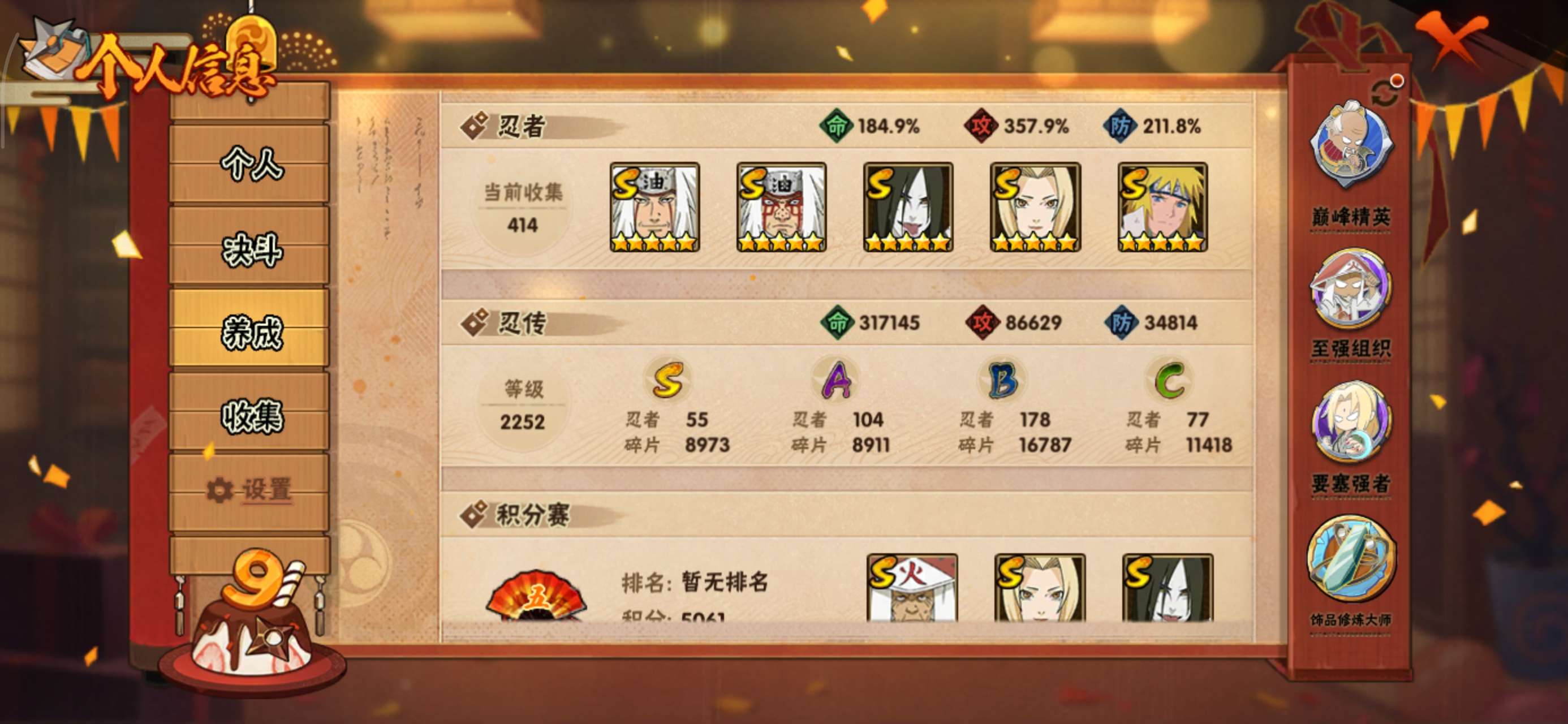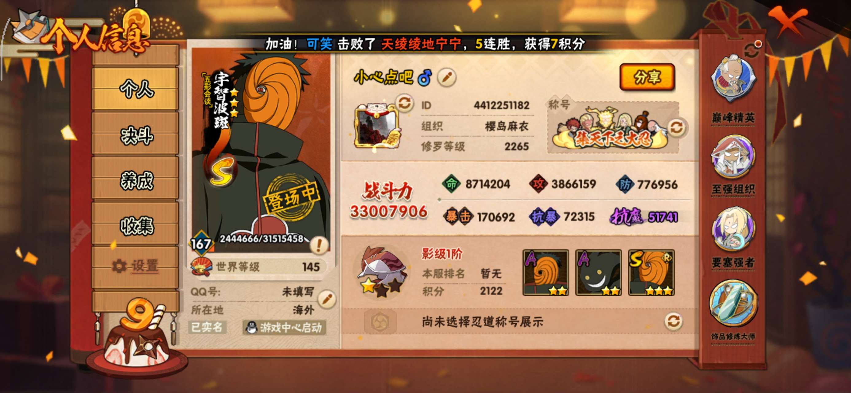 首页 > 租号大厅 > 火影忍者 > QQ账号/QQ账号 > (精品号)55S 104A 414忍 3300w战 金身水门 漂泊土 须佐卡卡西 艾 桃式 解班 创立柱间 永恒佐助 九喇嘛 幻卡…