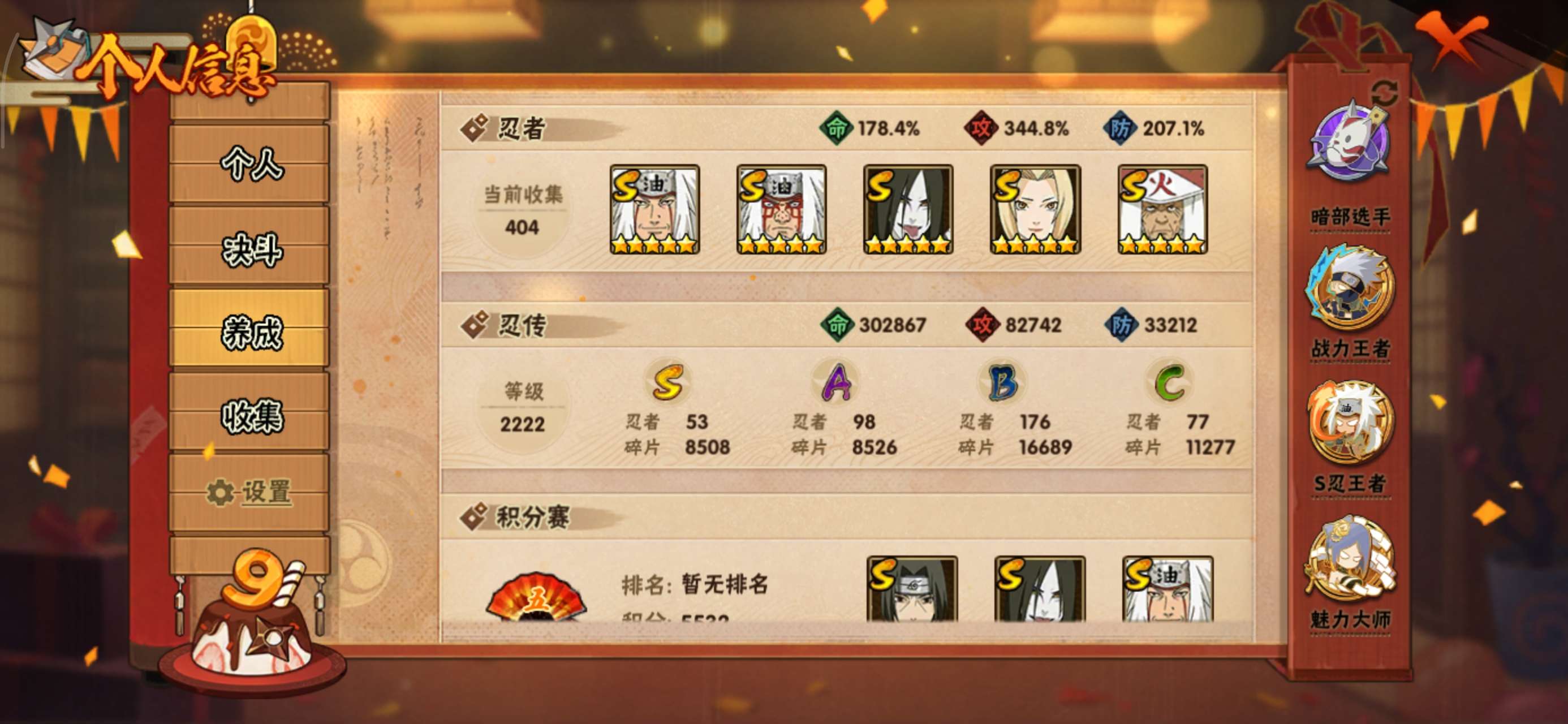 • 火影段位: 影级1阶