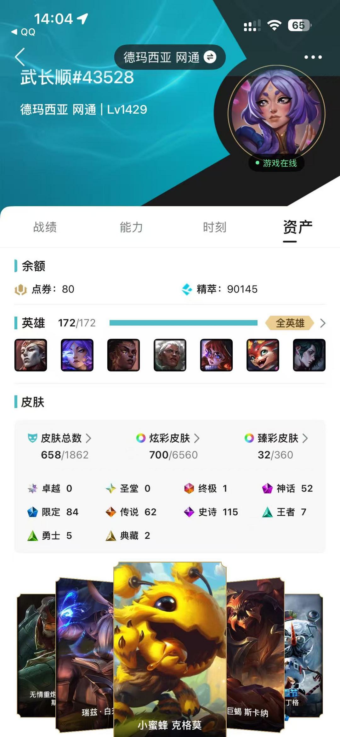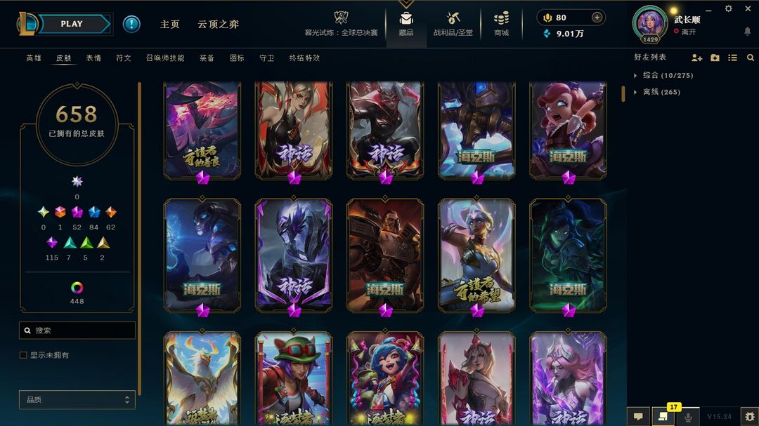 895皮肤〓可排位白银妹子号〓全英雄〓39神话〓14臻彩〓至臻亚索李青卡莎腕豪〓黑夜亚索神王〓三国套〓源计划至高天青花瓷灵魂莲华〓斗魂觉醒青铜黄金排位号虐菜