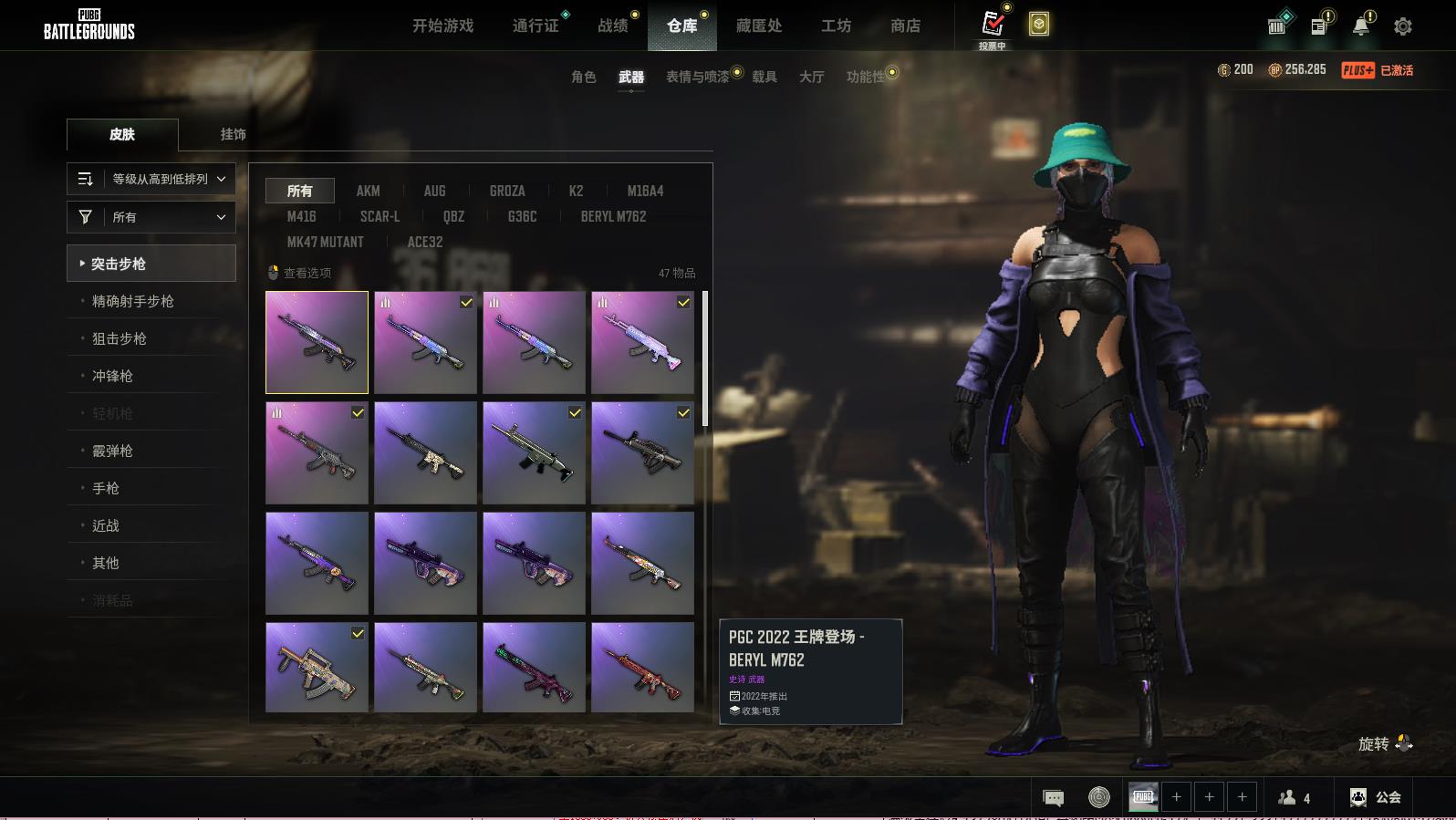 PUBG豪华版满级生存可排位,PGC2022王牌登场-RERYLM762;破碎元素-AKM;危险玩偶屋-BERYLM762;余音环绕-ACE32;剧变熔岩-SKS;破碎元素-MINI14;漫彩四溢-SKS;猛虎猎手-SLR;珍珠王朝-AWM;蒸汽计量表-KAR98K;粉梦长眠-M24;G-DRAGON-M24;一击撕裂者-S1897;数码沙漠迷彩-M416;镀银-SCAR-L;分秒必争-QBZ;魔女之力-BEPYLM762;多彩科技猫-AUG;竞速之道-AKM;山花烂漫-GP