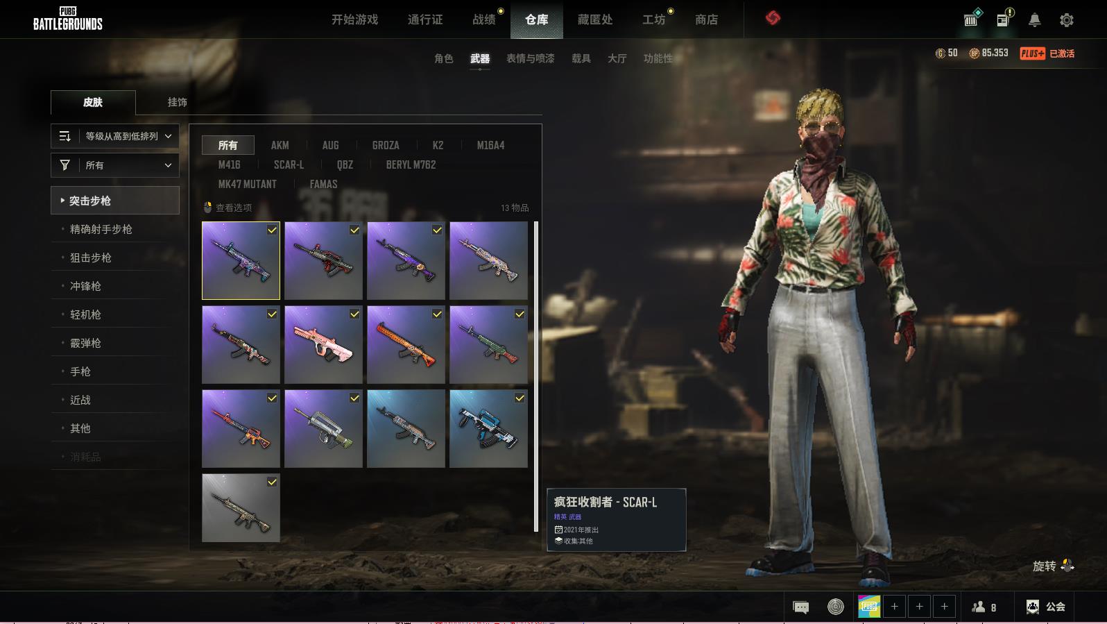 PUBG豪华版可排位,随机2-4级生存等级,寒蚀-MP5K;剧变熔岩-SKS;弥诺陶洛斯-MINI14还有更多随机紫色枪皮可玩,皮肤展示图如下,登陆免验证,到时