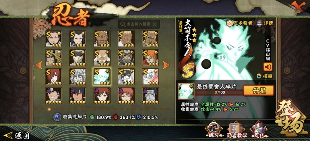 55S全S忍者夏日鼬侠影佐助九喇嘛水门六尾鸣人漂泊带土须佐卡卡西大筒木舍人395忍者
