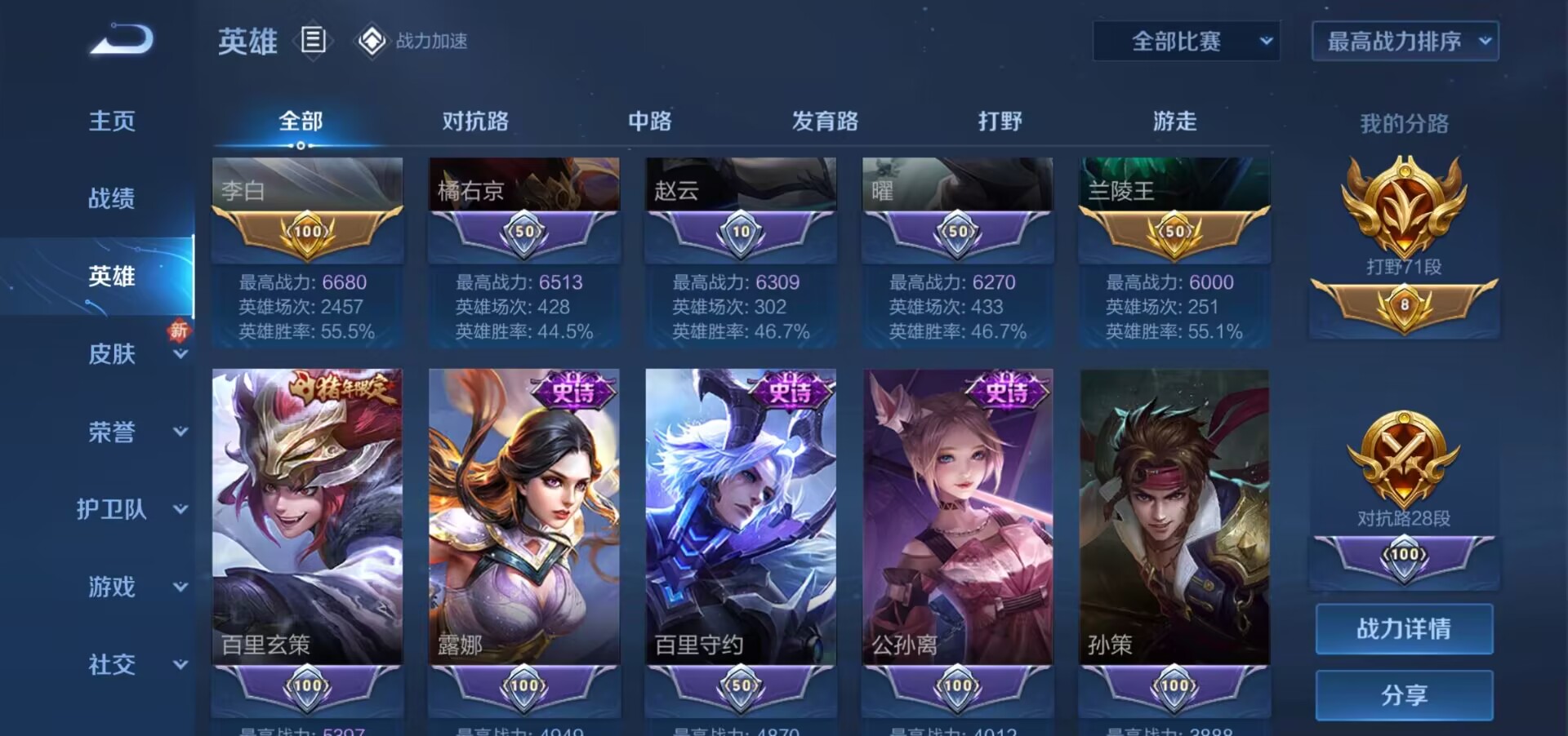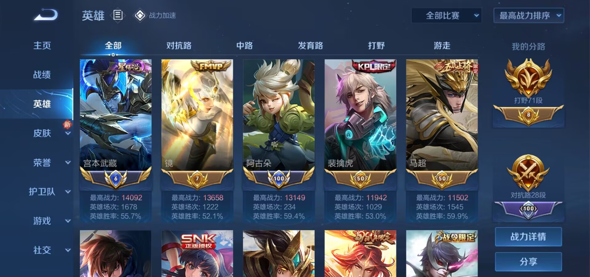 禁言禁好友71段打野丨在榜市级打野丨在榜县级玄策丨历史4野王国服宫本阿古朵澜云中君