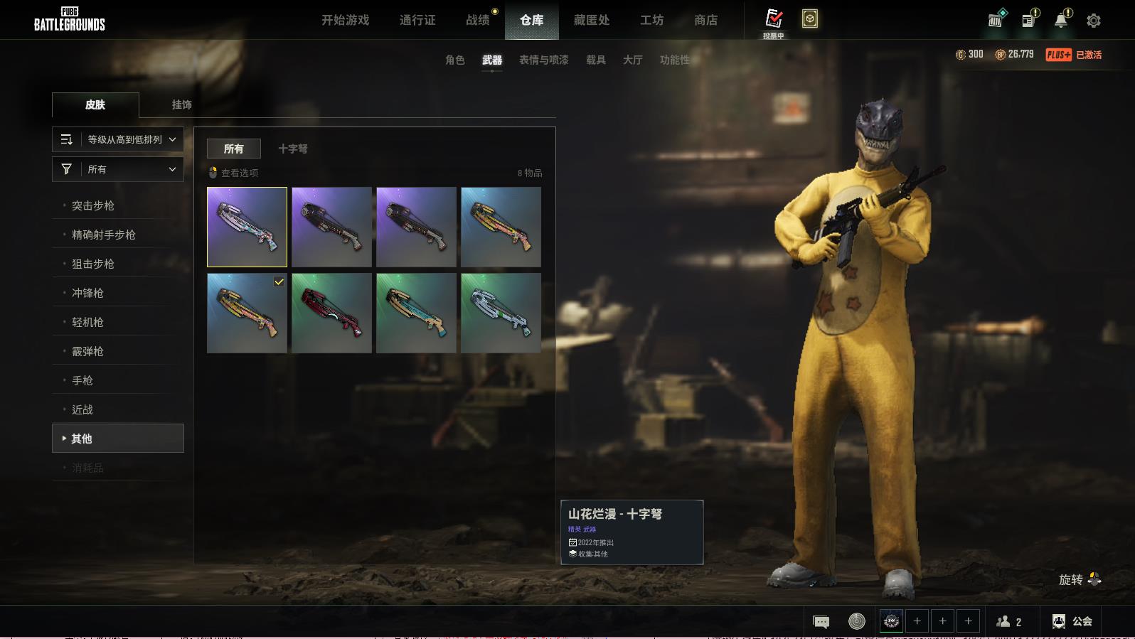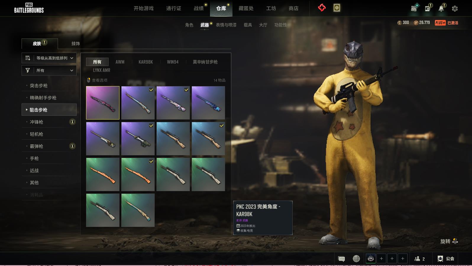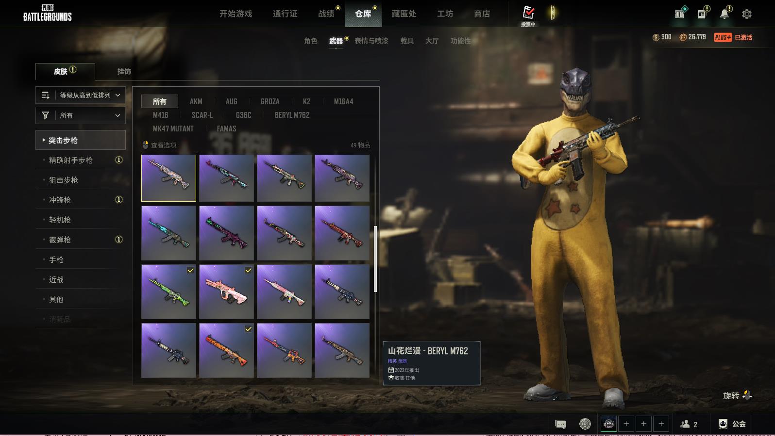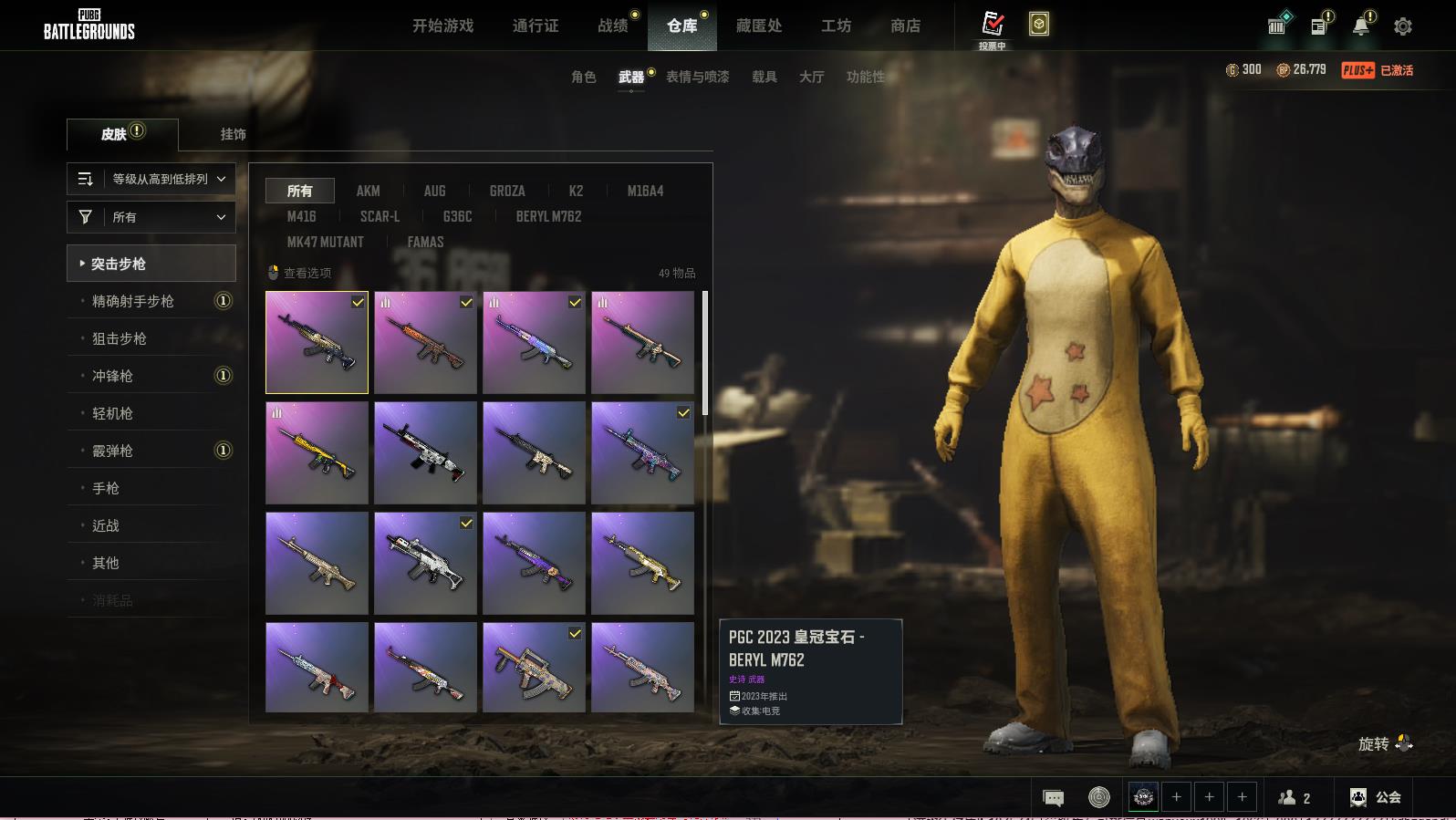 PUBG豪华版可排位,随机2-4级生存等级,PGC2023皇冠宝石-RERYLM762;剧变熔岩-M416;破碎元素-AKM;黄道猎手-M416;小兔巡逻队-M