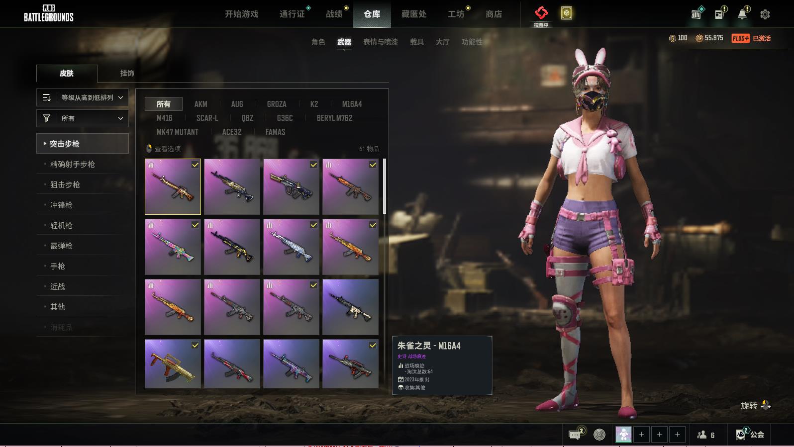 PUBG豪华版可排位,随机2-4级生存等级,朱雀之灵-M16A4;PGC2023皇冠宝石-RERYLM762;沙悟净-AUG;剧变熔岩-M416;彩虹之上-K2