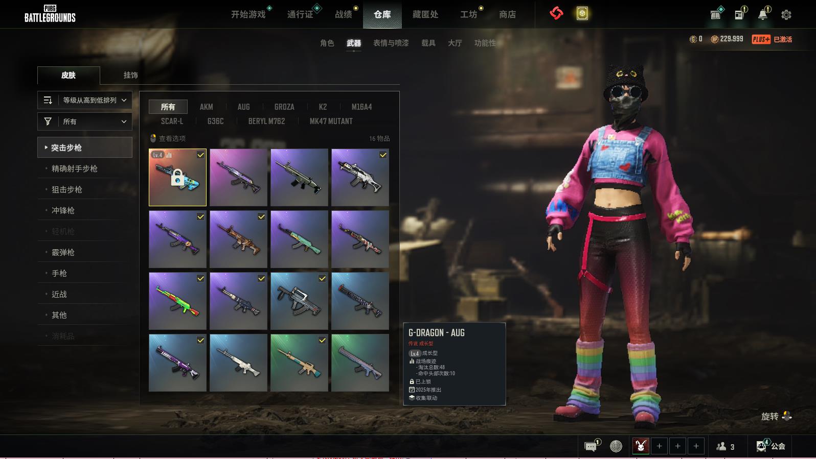 PUBG豪华版可排位,随机2-4级生存等级,G-DRAGON-AUGLv.448;烈日灼烧-S1897;PGC2022王牌登场-RERYLM762;蜂刺-SLR还有更多随机紫色枪皮可玩,皮肤展示图如下,登陆免验证,到时不下线,长租更划算,专业出租不顶号,大吉大利,天天吃鸡!
