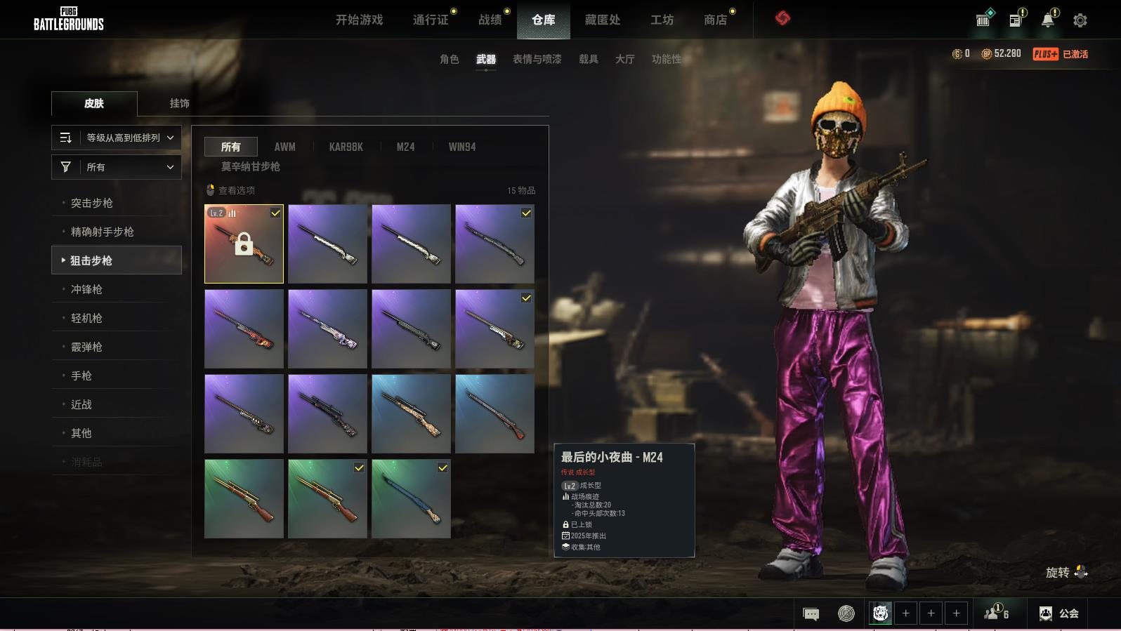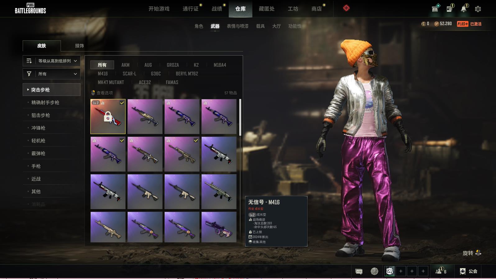 PUBG豪华版可排位,随机2-4级生存等级,无信号M416Lv2203;最后的小夜曲-M24Lv220;PGC2023皇冠宝石-RERYLM762;湮灭-BER