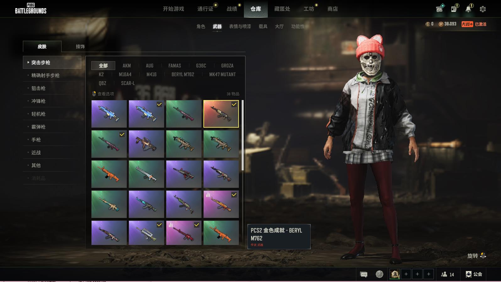 PUBG豪华版满级生存可排位,PCS2金色成就-BERYLM762传说武器;孙悟空-AKM战场痕迹战场痕迹46;猩红时刻-M16A4战场痕迹战场痕迹19;弥诺陶